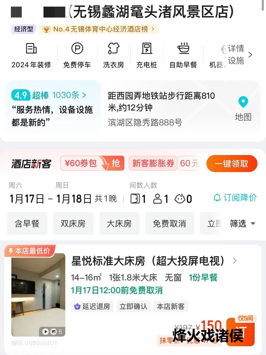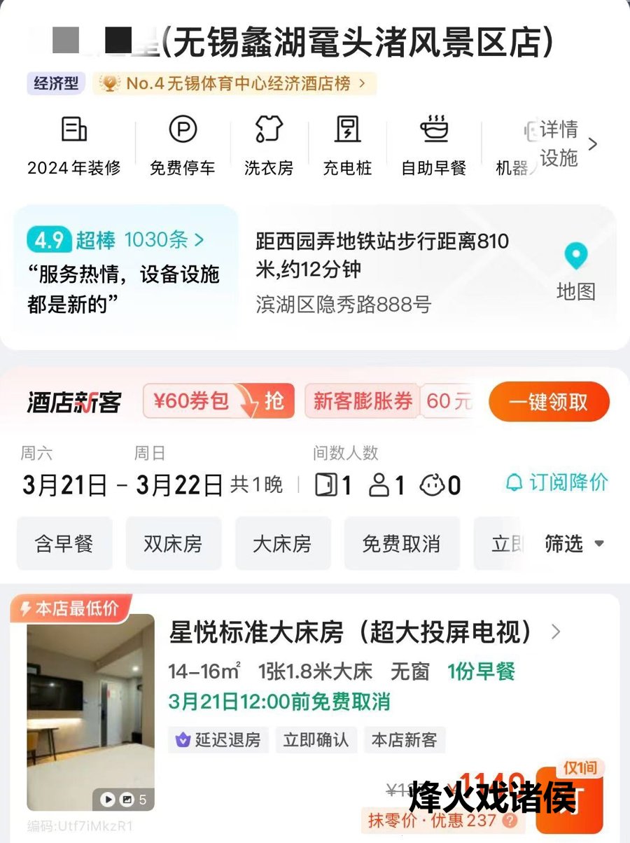 为此,记者专诚查询某预订平台发现,赛谈相近酒店价钱涨幅不一:位于鼋头渚酣畅区的某连锁快捷酒店平日150元/晚的房间,比赛前一晚飙升至1140元,涨幅令东谈主惊叹,非景区门店则涨了400元傍边;一家四星级酒店平日价512元,比赛前一晚涨至2058元。其他几家赛事沿线酒店,太湖华邑酒店平日价与比赛前一晚价钱基本捏平 ,太湖新城洲际酒店、太湖新城英迪格比拟平日价,赛预先一晚价钱涨了三四百元。